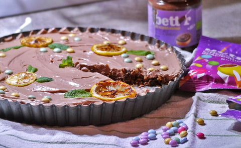 Za to sirovo torto uporabljamo Bett'r lešnikovo-kakavov namaz -100% organski namaz brez dodanega sladkorja in palmovega olja, z bogato aromo lešnika in neustavljivim okusom čokolade.