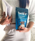 Certificirano organski kokosovi kosmiči, posuti z Bett'r mešanico nektarja kokosovih cvetov in finega kakava v prahu, zapečeni do okusnega hrustljavosti. Uživajte kot samostojno poslastico ali jo potresite po vrhu kremastih ali pečenih sladic, sladoleda ali celo sklede za zajtrk po vaši izbiri.