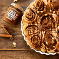 Naughty Nuts Almond Cinnamon Tahini je narejen iz 100 % naravnih sestavin kakovostnega izvora. Ne vsebuje dodatkov, kot sta palmovo olje ali sladkor. Tahini je sladkan z datlji, ki se harmonično povezujejo z mandlji, indijskimi oreščki in cimetom ter dajejo okus pravih cimetovih zvitkov!