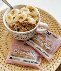 ovseni kosmiči brez glutena* (24%), indijski oreščki* (22%), kokosov sirup*, posušeni kokos*, čokoladni koščki* (kakavova masa*, kokosov sladkor*, kakavovo maslo*, sončnični lecitin*) (8%), kokosovo olje*, kokosovi kosmiči*, burbonska vanilija* (0,3%), sol.